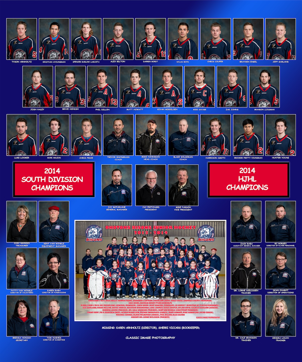 The Carstar Okotoks Bisons captured their 11th HJHL Championship during the 2013–2014 season, completing an achievement that no team in HJHL history had ever accomplished before — or has since. With this title, the Bisons secured an unprecedented four consecutive HJHL Championships, cementing a stretch of true dominance between 2010 and 2014 that stands alone in league history.